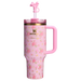 The 40-ounce Quencher® H2.0 FlowState™ Tumbler keeps your drink ice cold for hours, thanks to double-wall vacuum insulation. The versatile FlowState™ 3-position lid has three sip settings: one for the reusable straw, one without and the option to rotate the silicone cover shut when you’re on the go. Did we mention it’s adorned with a pink bow Straw Topper?